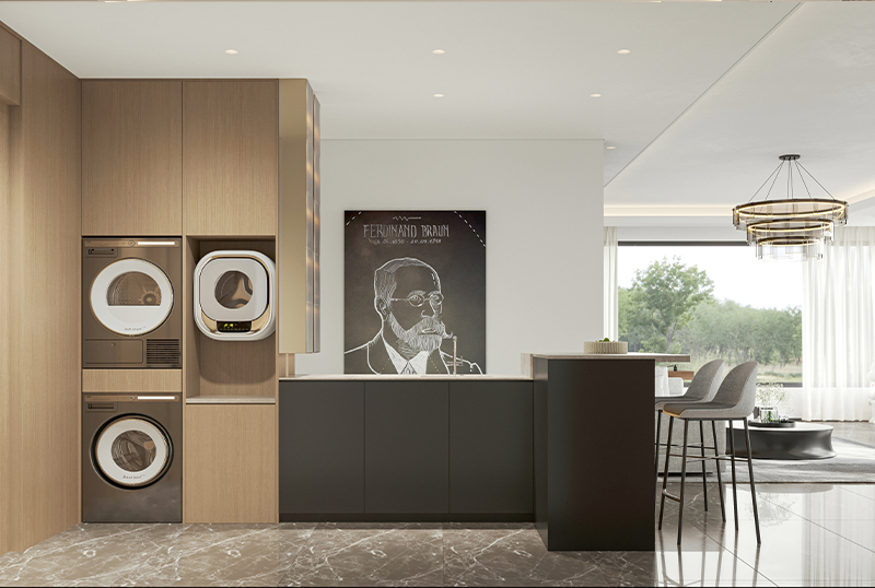 原木色搭配深灰色大理石。引用天然纹理,回归自然本质。中性色与原木色和谐搭配,线条简洁利落展现出最佳的质感与效果。