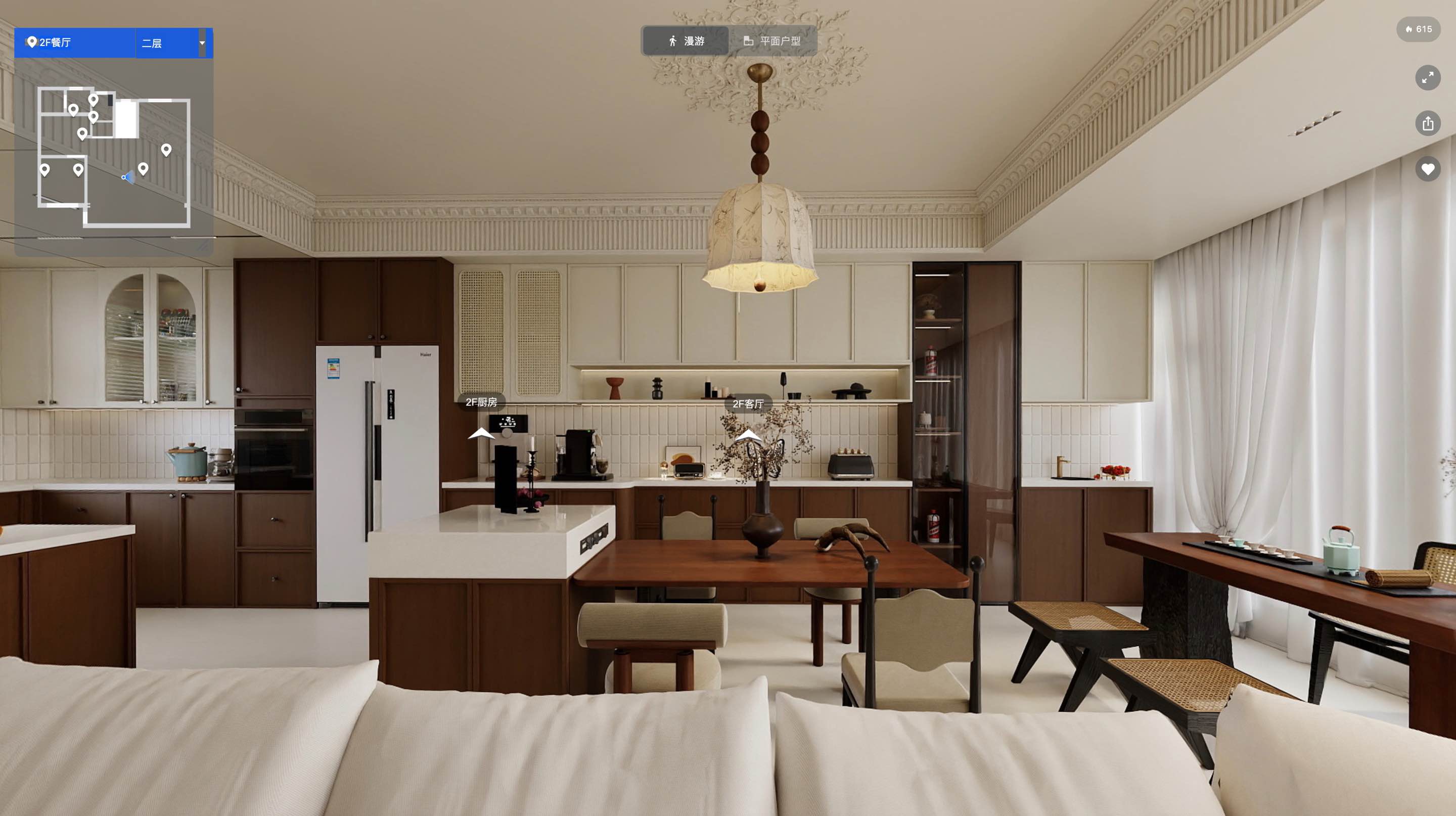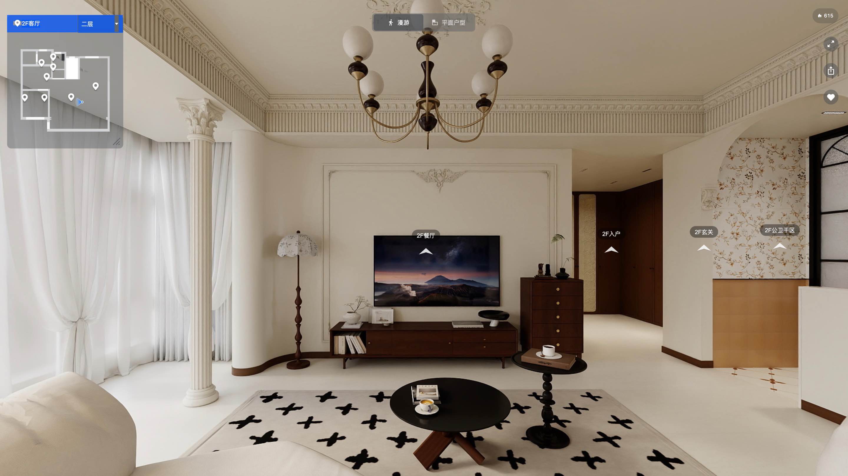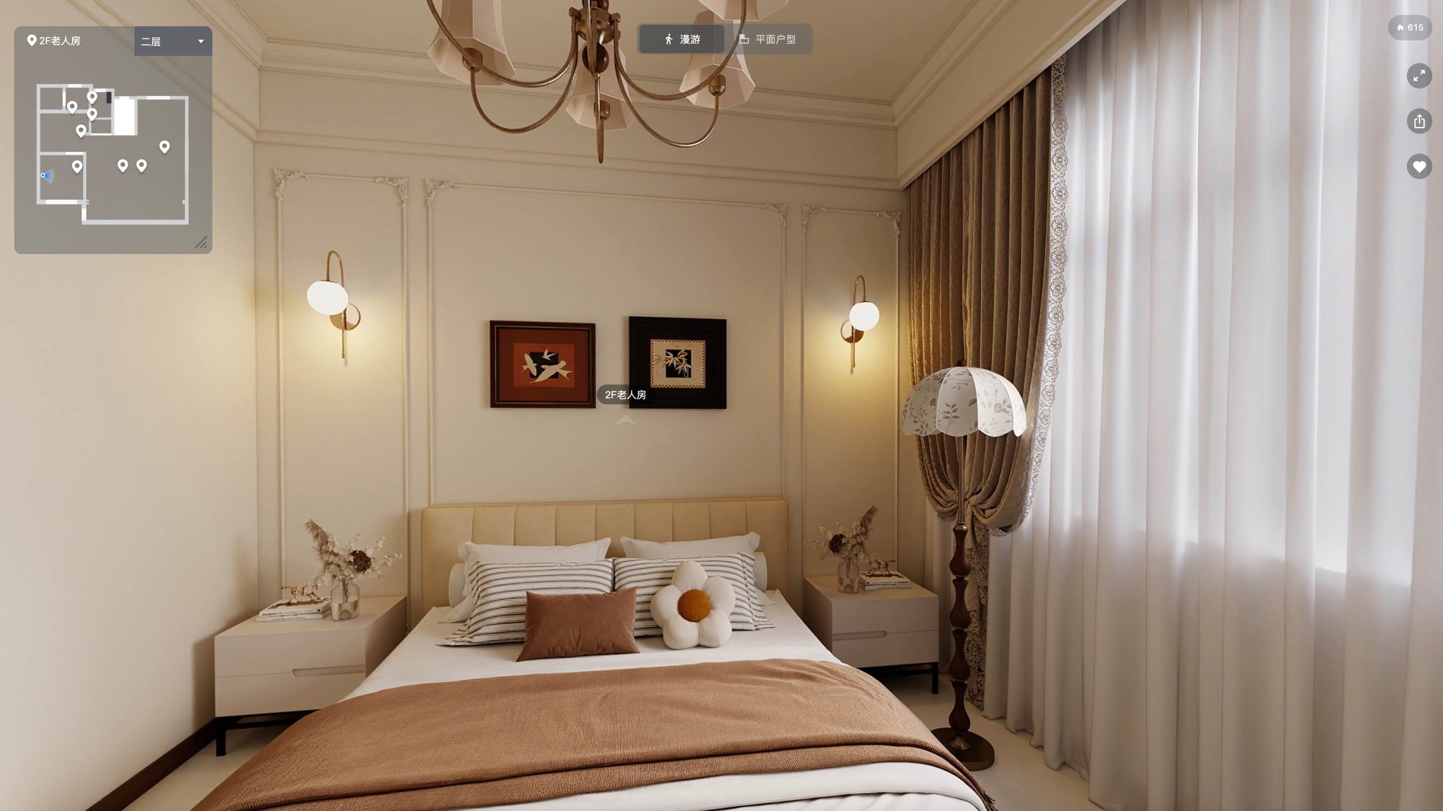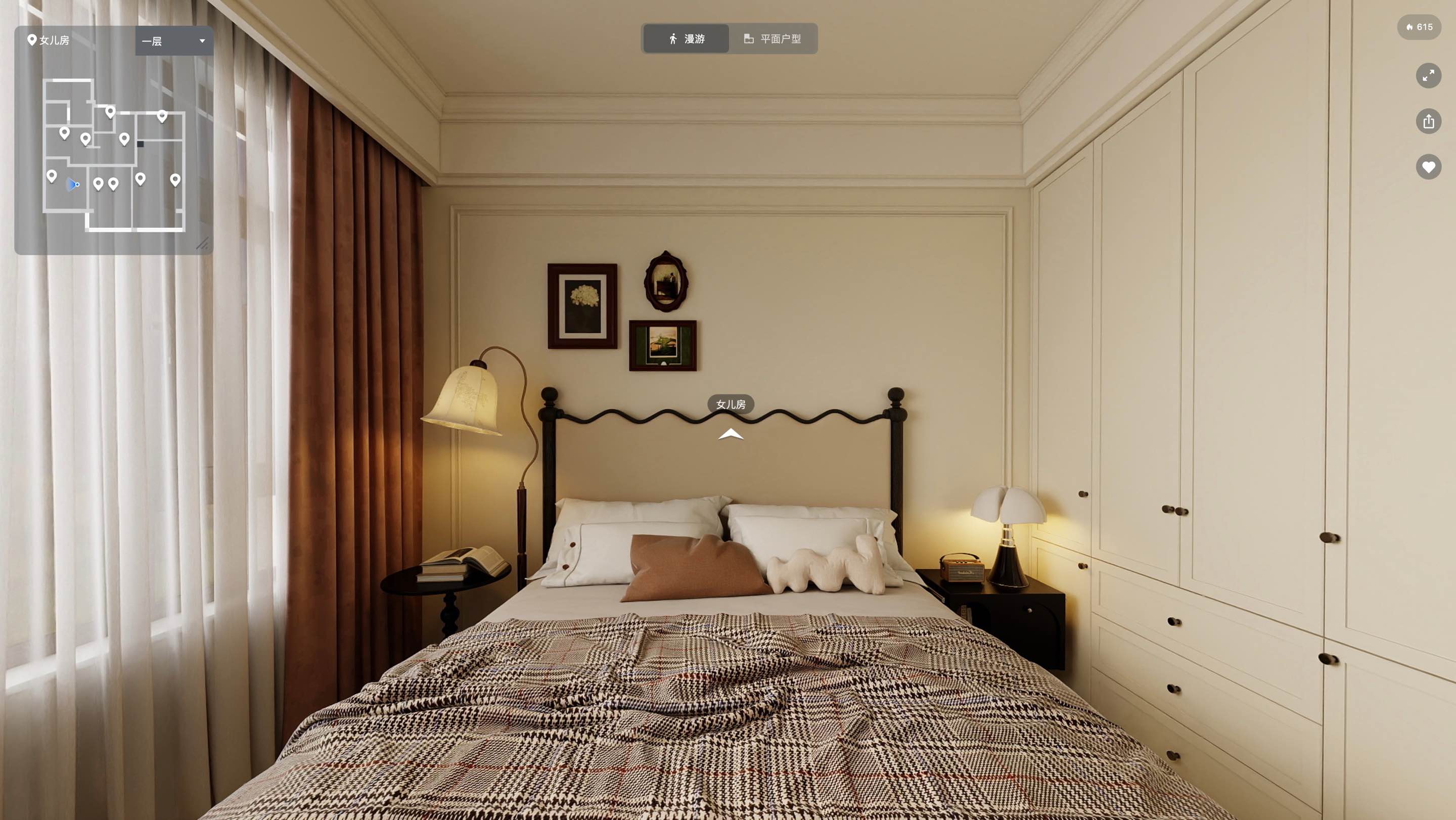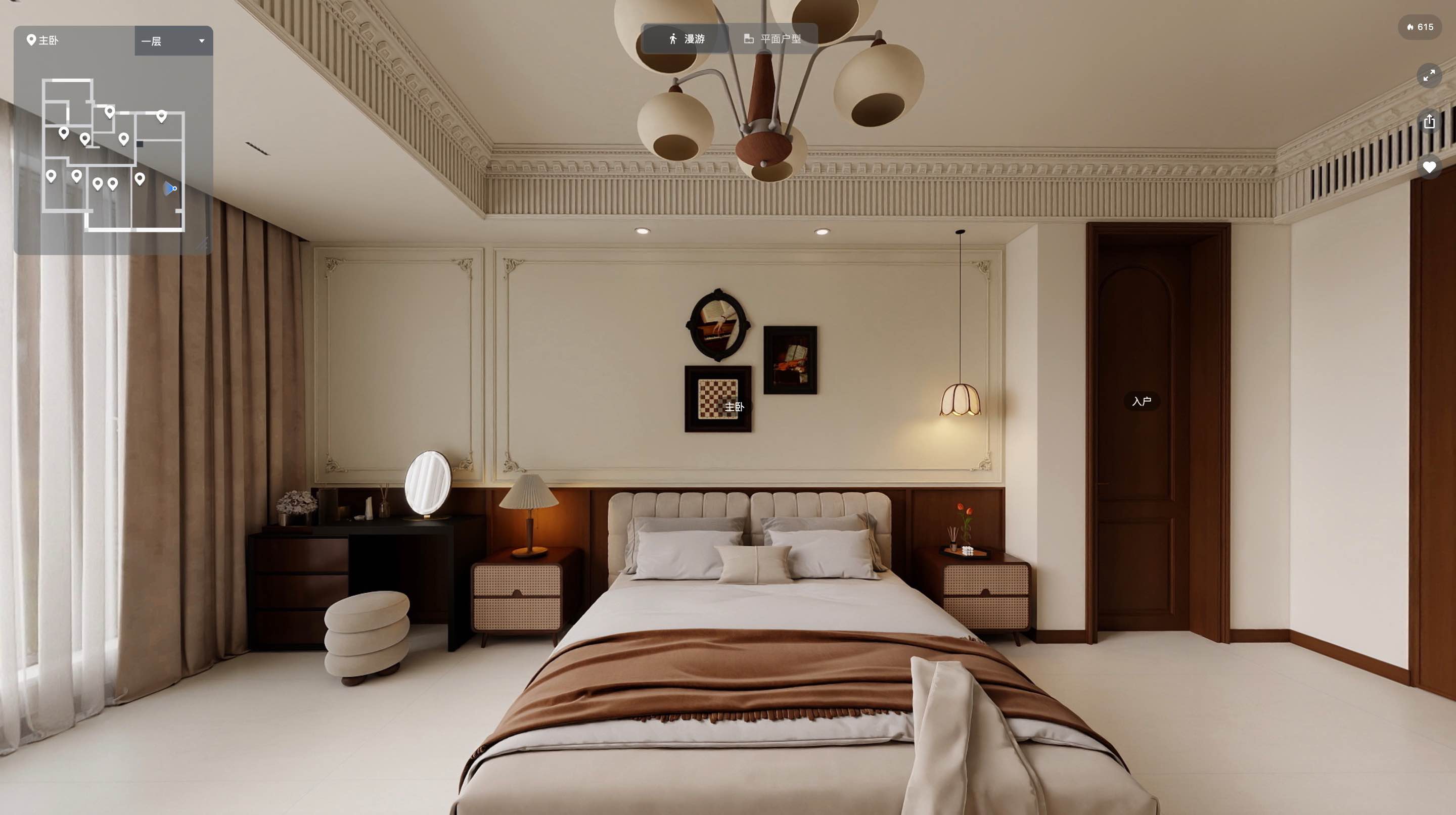 法式中古风格追求古典与典雅的元素,强调浪漫、温馨和精致的氛围,设计上注重细节处理,追求流动的曲线美和精致的细节处理,体现生活的艺术化,色彩搭配以浅色调为主,如米色、白色等,与中古风情的深色调(如红棕色、复古绿)进行巧妙的融合,营造出沉稳厚重的复古家居精髓。