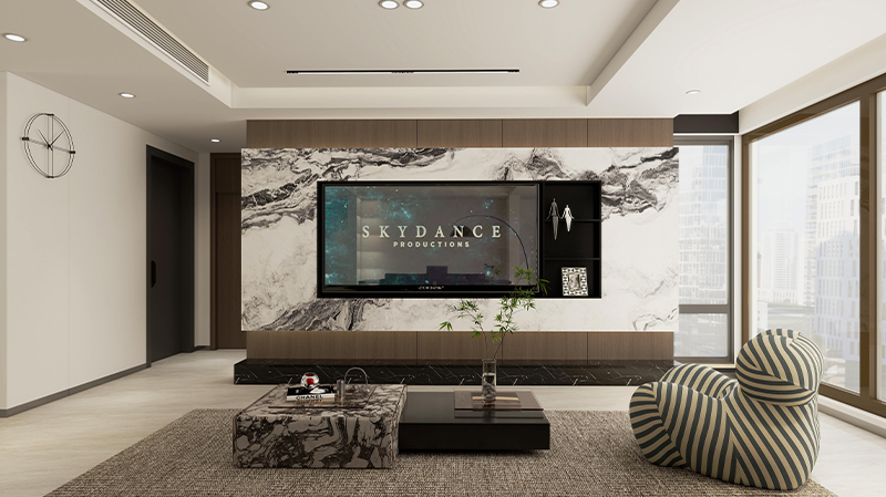 而顶面采用无主灯设计,让光线照到每个角落,墙面,和艺术品,营造出高级且丰富的光影层次。