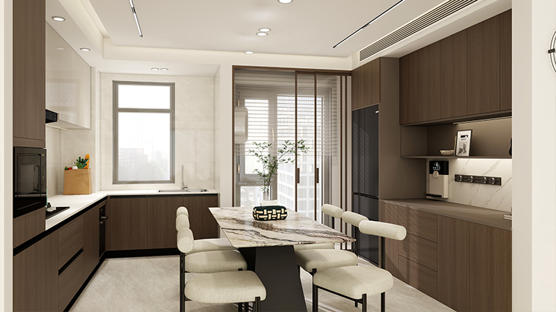 本方案的整体设计风格采用的是意式轻奢,以减法为核心,摒弃了多余的装饰,通过材质的运用,灯光的配合和功能性的布局,建构了一个温暖互动的空间